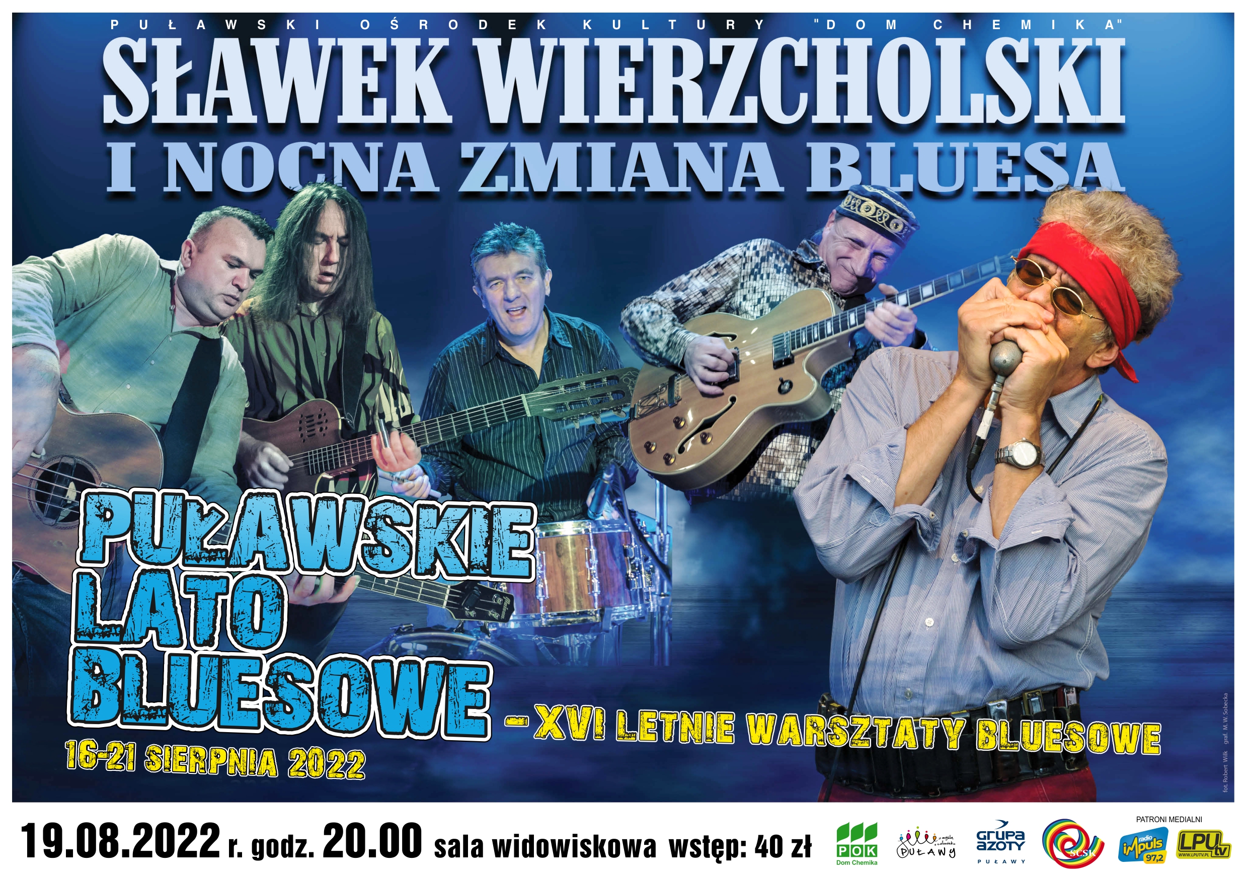 Najpopularniejszy polski wykonawca bluesa – Sławek Wierzcholski i stworzona przez niego Nocna Zmiana Bluesa od 40 lat rozgrzewają serca miłośników tego gatunku. 19 sierpnia grupa zagra specjalnie dla puławskiej publiczności i uczestników XVI Letnich Warsztatów Bluesowych.
