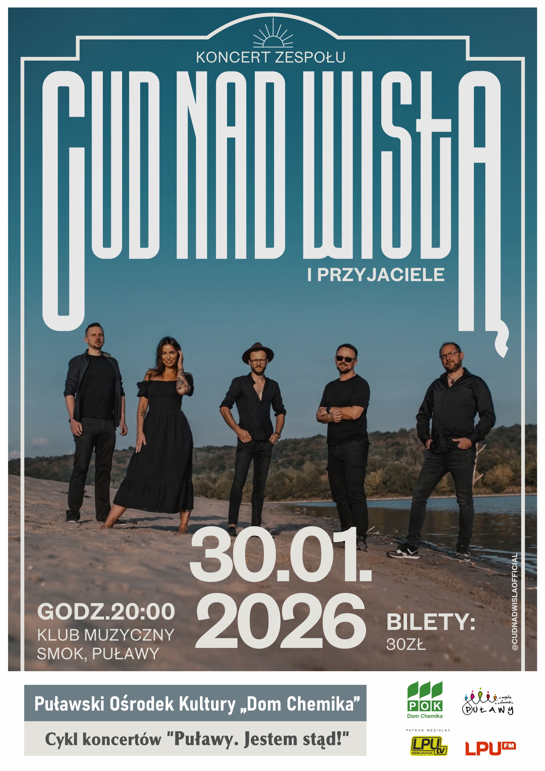 Puławski zespół „Cud nad Wisłą”, który swoją pasją i piękną muzyką zdobył serca fanów na lubelskiej ziemi i nie tylko, zaprasza na wyjątkowy koncert z okazji 5-lecia działalności! 30 stycznia od godziny 20:00 na scenie Klubu Muzycznego SMOK nie zabraknie wyjątkowych gości, którzy dołączą do zespołu, aby wspólnie uczcić ten jubileusz.