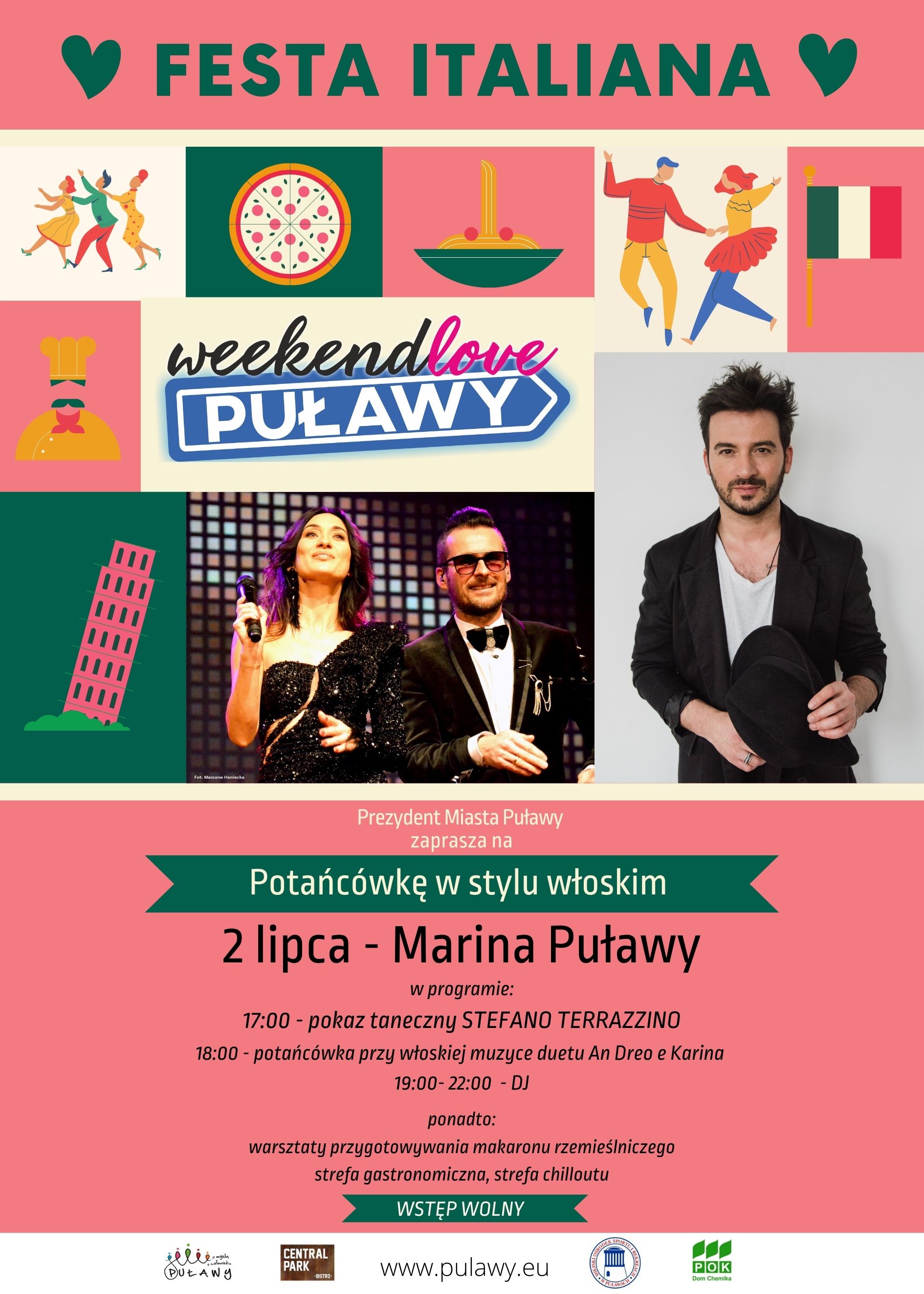 W programie: pokaz taneczny Stefano Terrazzino, występ muzycznego duetu An Dreo e Karina oraz DJ. Na miejscu będzie można wziąć udział w warsztatach przygotowywania makaronu rzemieślniczego, które będą prowadzone przez Central Park Puławy.