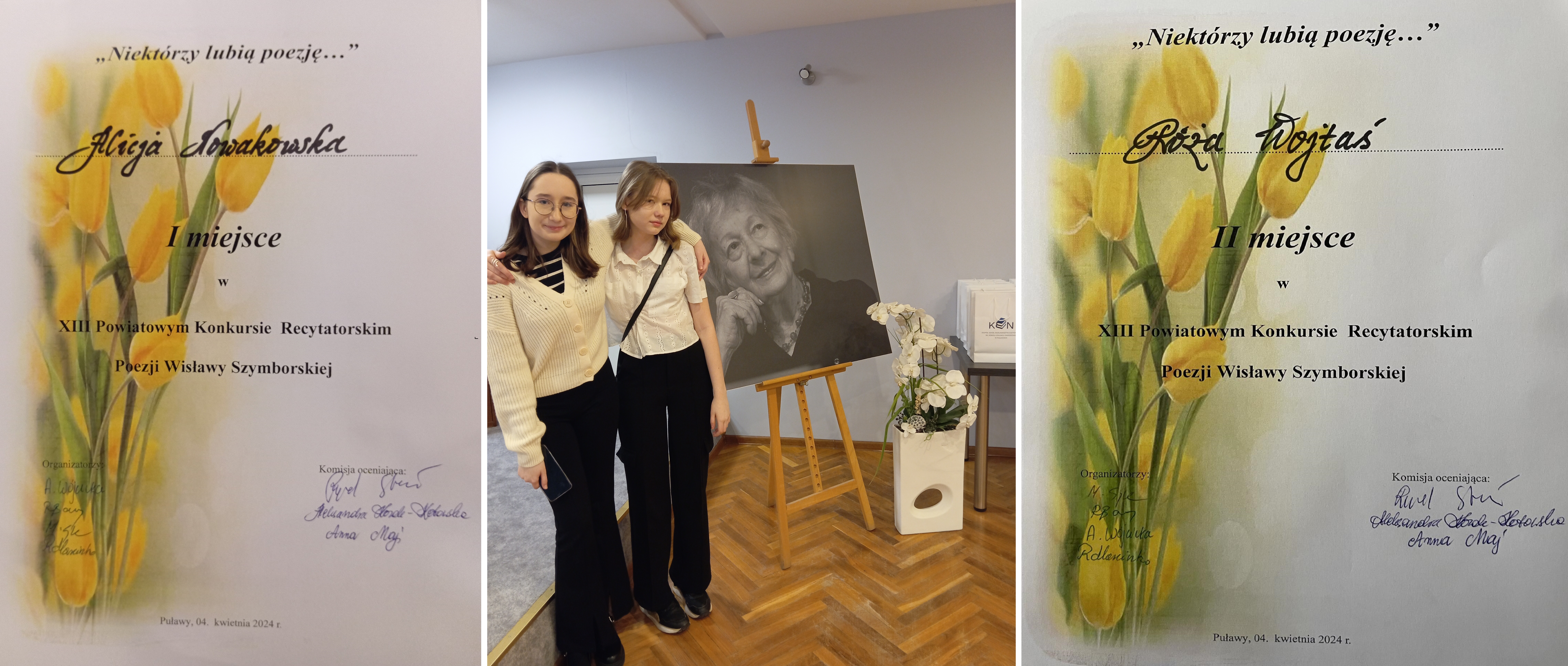 Decyzją komisji jurorskiej w kategorii uczniów szkół podstawowych I miejsce zajęła Alicja Nowakowska, a w kategorii szkół średnich miejsce II powędrowało do Róży Wojtaś.
