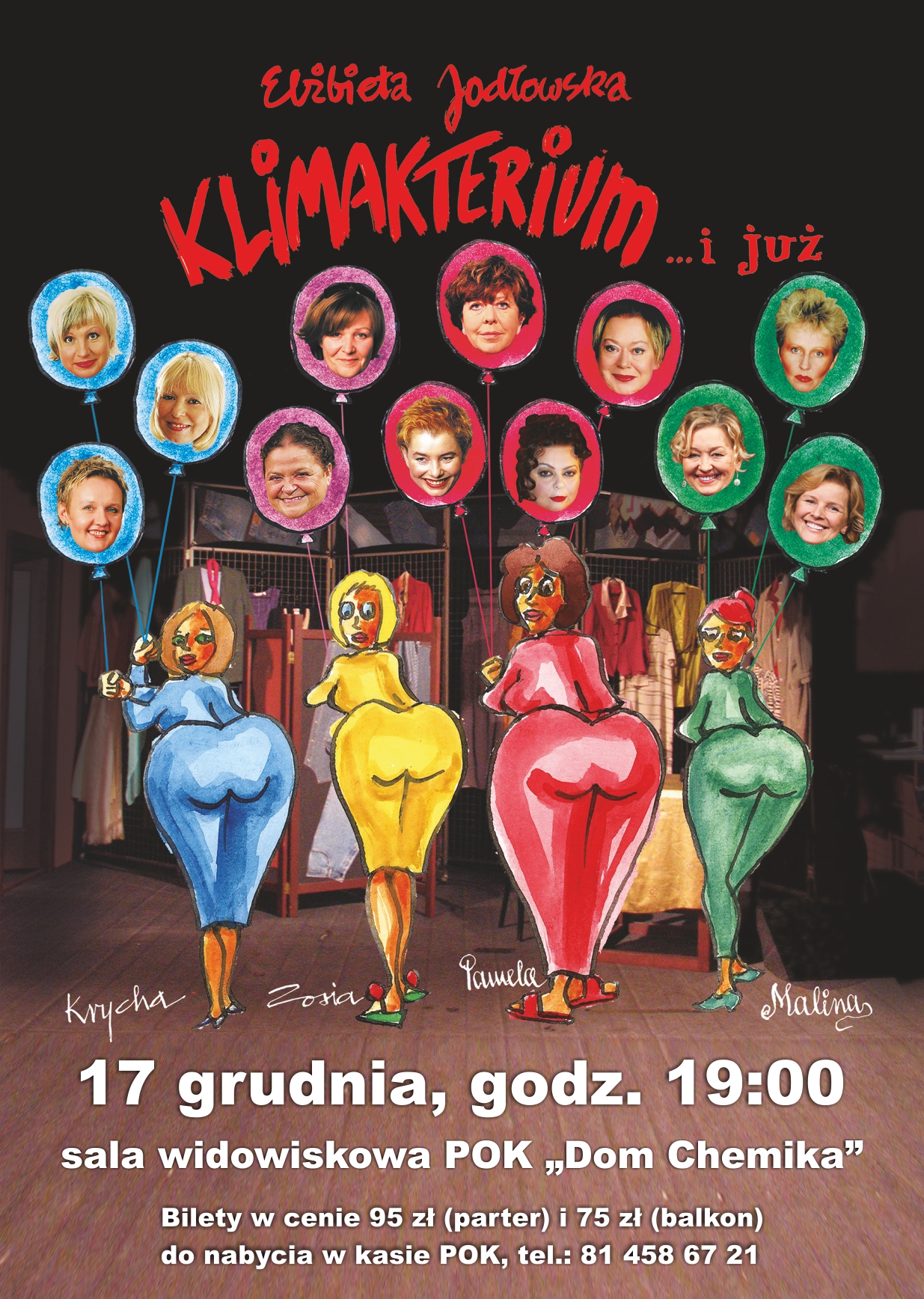 Na spektakl zapraszamy 17grudnia o godz. 19:00 do sali widowiskowej POK „Dom Chemika”. Bilety w cenie 95 zł (parter) i 75 zł (balkon) do nabycia w kasie POK „Dom Chemika”, tel.: 81 458 67 21.